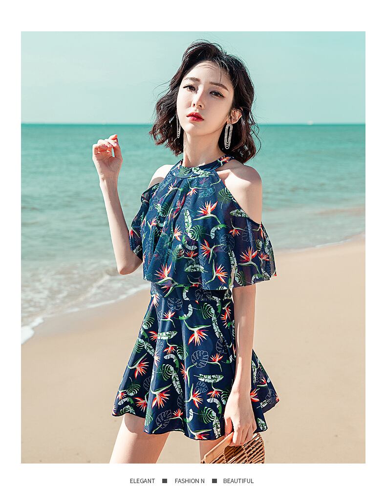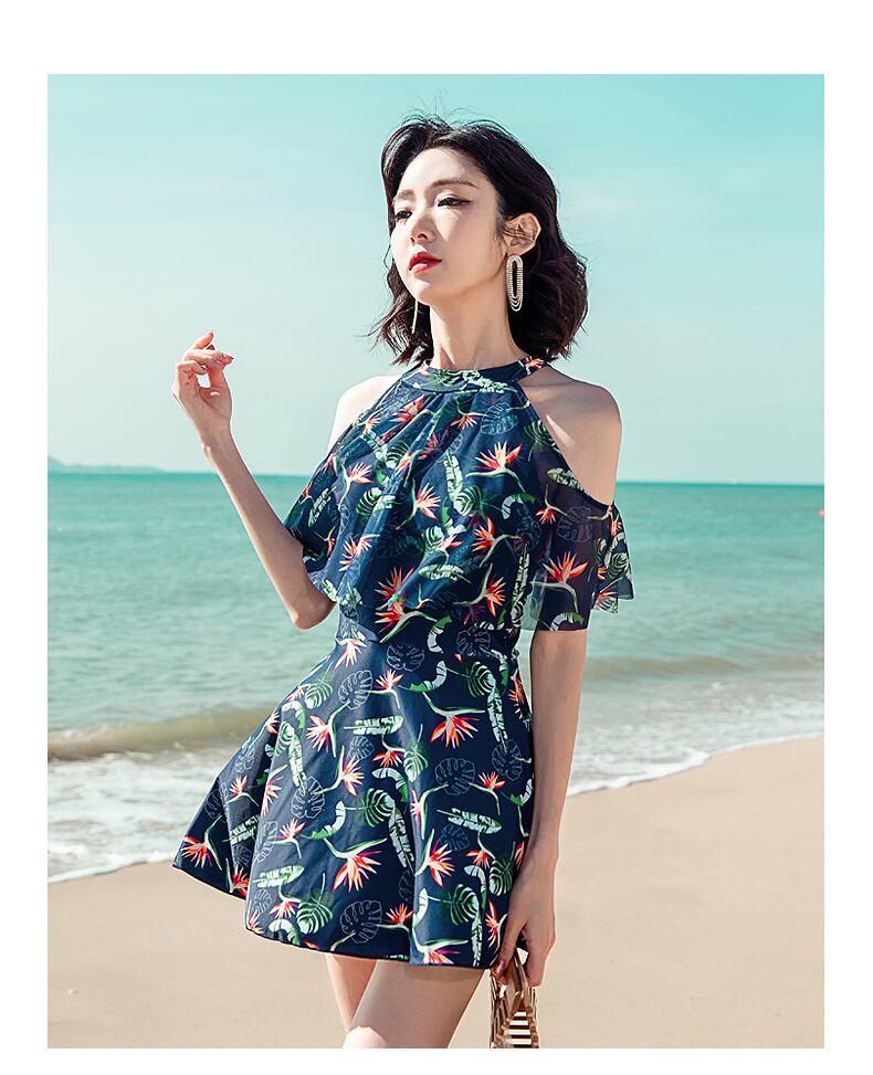 水着 ワンピース水着 レディース 植物柄 肩出し スイムウェア ビーチウェア 可愛い 韓国 ファッション コーデ おすすめ カジュアル きれいめ 大きいサイズ 人気 ゆったり 20代 30代 40代 50代