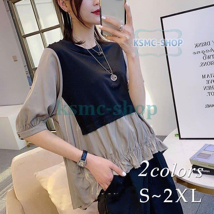 ブラウス シャツ レディース 半袖 2色 きれいめ シフォン 韓国風 韓国 ファッション コーデ おすすめ カジュアル きれいめ 大きいサイズ 人気 ゆったり 20代 30代 40代 50代