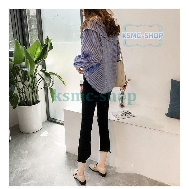 ブラウス シャツ レディース 長袖 2色 ストライプ きれいめ オフィス おしゃれ 韓国風 6837
