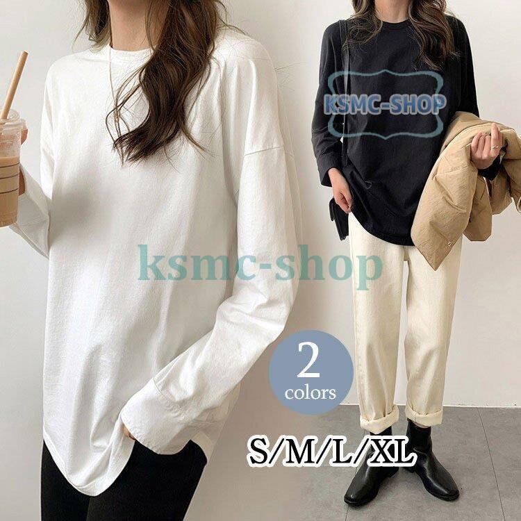 tシャツ ブラウス カットソー レディース 長袖 2色 無地 おしゃれ 韓国風 韓国 ファッション コーデ おすすめ カジュアル きれいめ 大きいサイズ 人気 ゆったり 20代 30代 40代 50代
