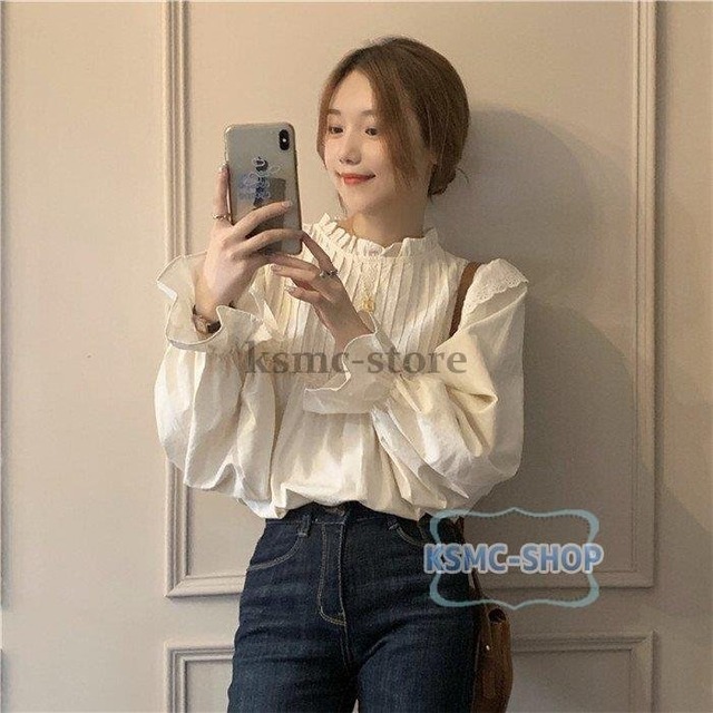 ★特徴:韓国ファッション系好きにおすすめの長袖ブラウス。カジュアル、きれいめコーデに。