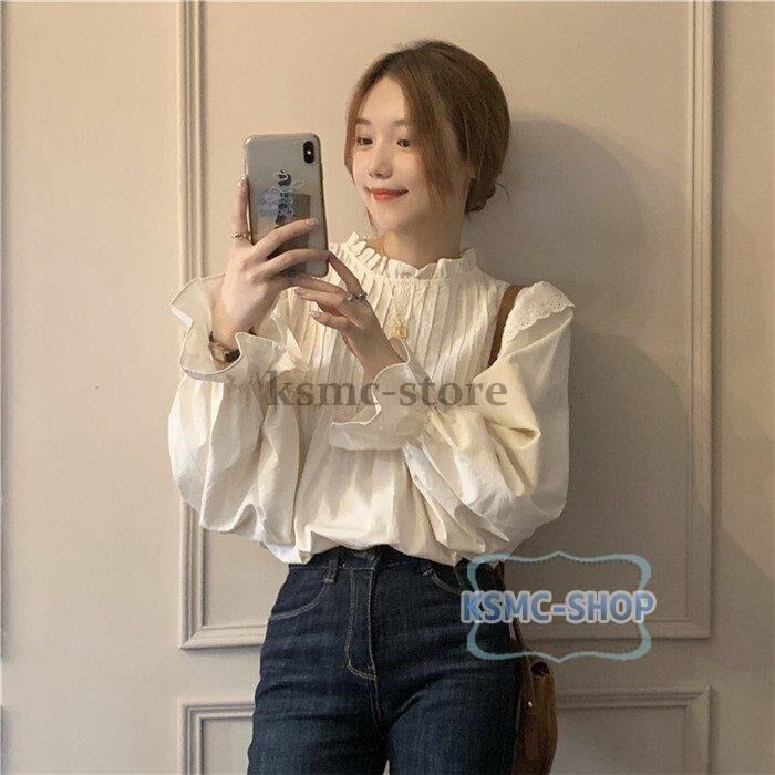 ブラウス シャツ レディース 長袖 ベージュ パフスリーブ おしゃれ きれいめ 韓国風 6854
