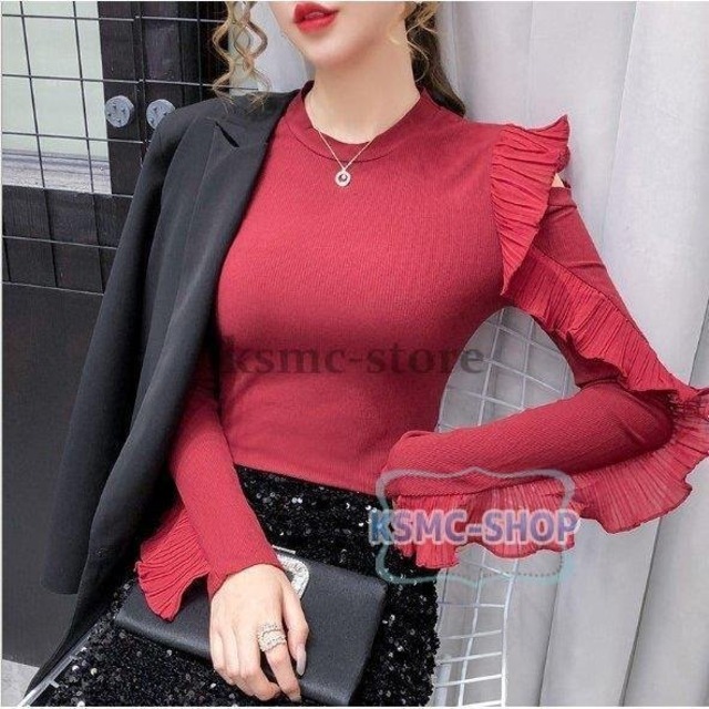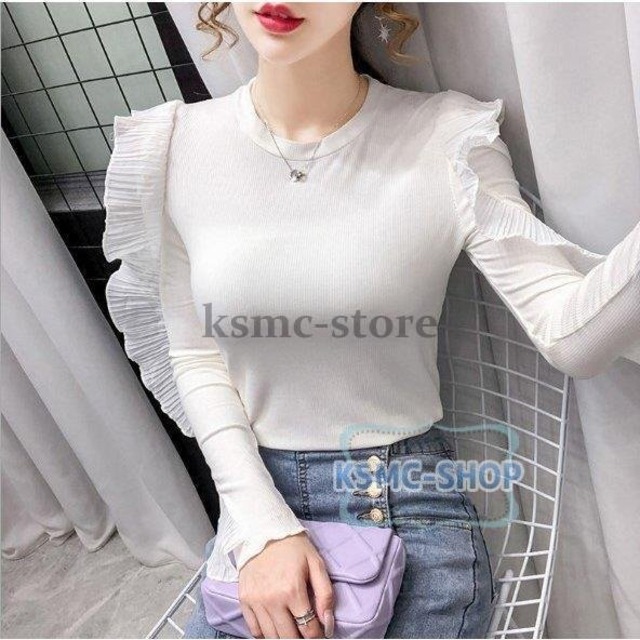 ブラウス トップス レディース 長袖 3色 フリル きれいめ おしゃれ 韓国風 6862