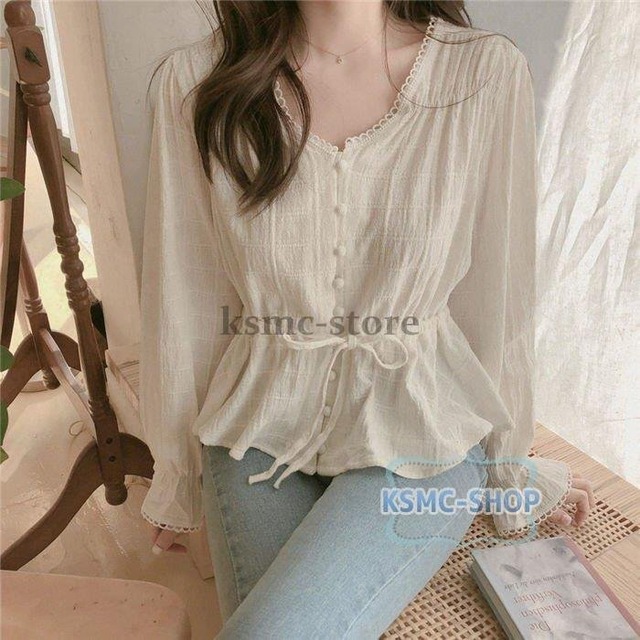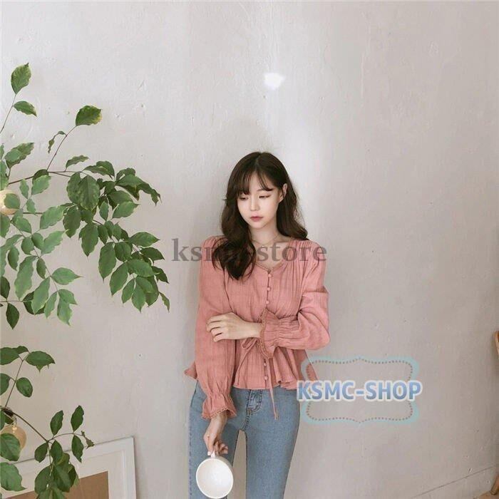 ★特徴:韓国ファッション系好きにおすすめの長袖ブラウス。きれいめ、カジュアルコーデに。