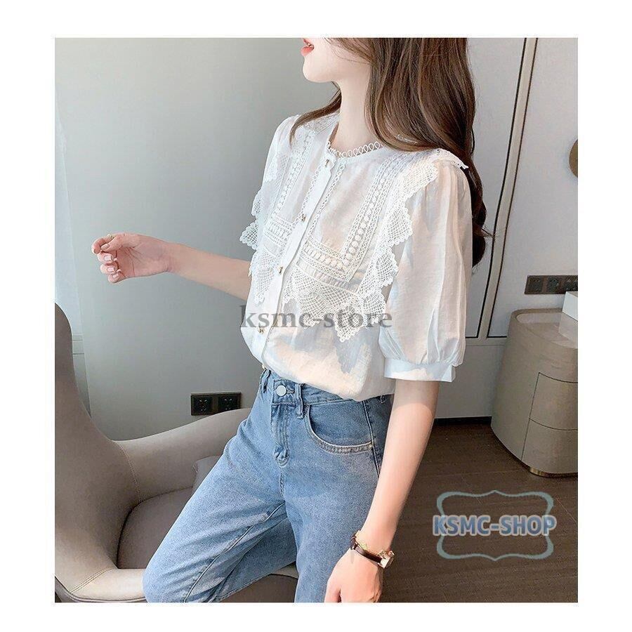 ブラウス シャツ レディース 半袖 白 きれいめ おしゃれ 韓国風 6866