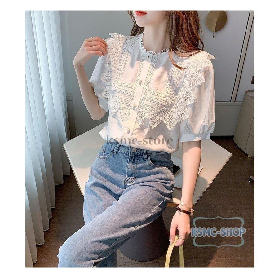 ブラウス シャツ レディース 半袖 白 きれいめ おしゃれ 韓国風 韓国 ファッション コーデ おすすめ カジュアル きれいめ 大きいサイズ 人気 ゆったり 20代 30代 40代 50代