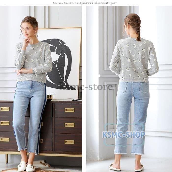 スウェット プルオーバー レディース 長袖 グレー 花柄 おしゃれ 韓国風 6869