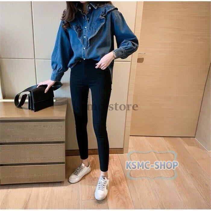 デニムシャツ ブラウス レディース 2色 長袖 おしゃれ カジュアル 韓国風 6877