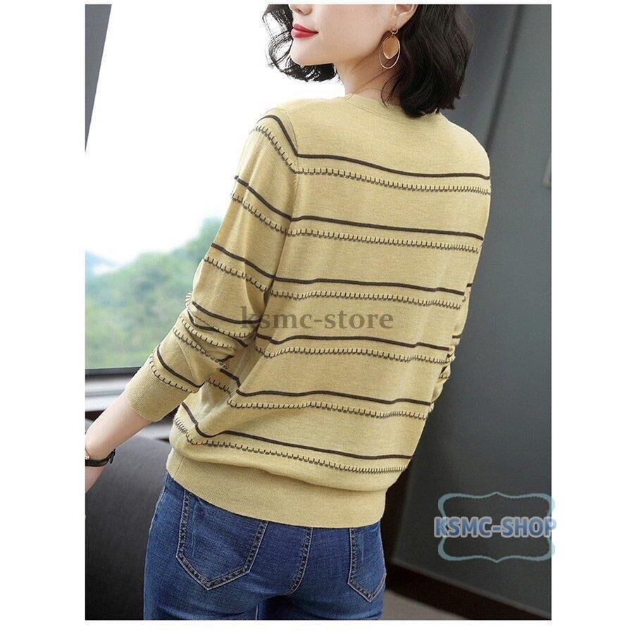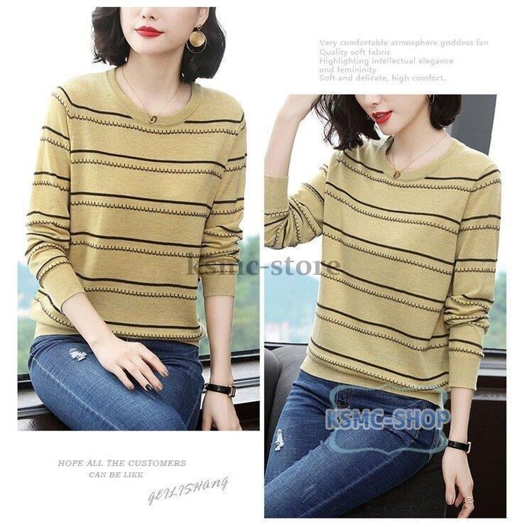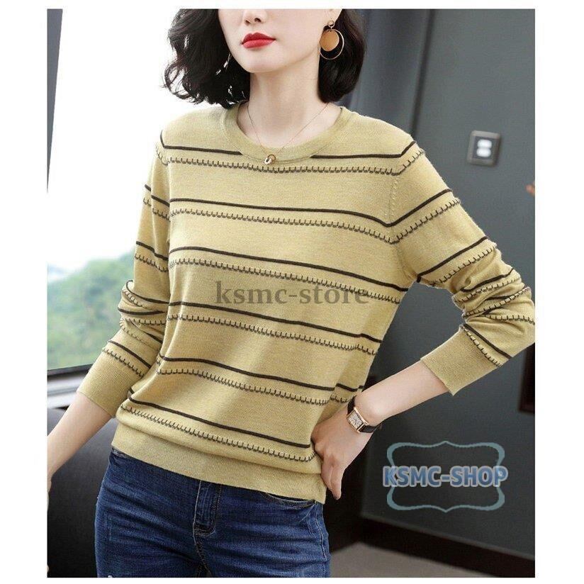 ニット セーター トップス レディース 4色 長袖 ボーダー おしゃれ ゆったり 韓国風 韓国 ファッション コーデ おすすめ カジュアル きれいめ 大きいサイズ 人気 ゆったり 20代 30代 40代 50代