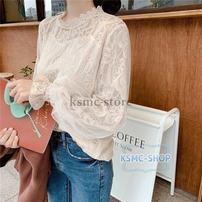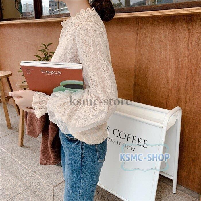 ブラウス シャツ レディース 2色 長袖 レース パフスリーブ おしゃれ きれいめ 韓国風 6895