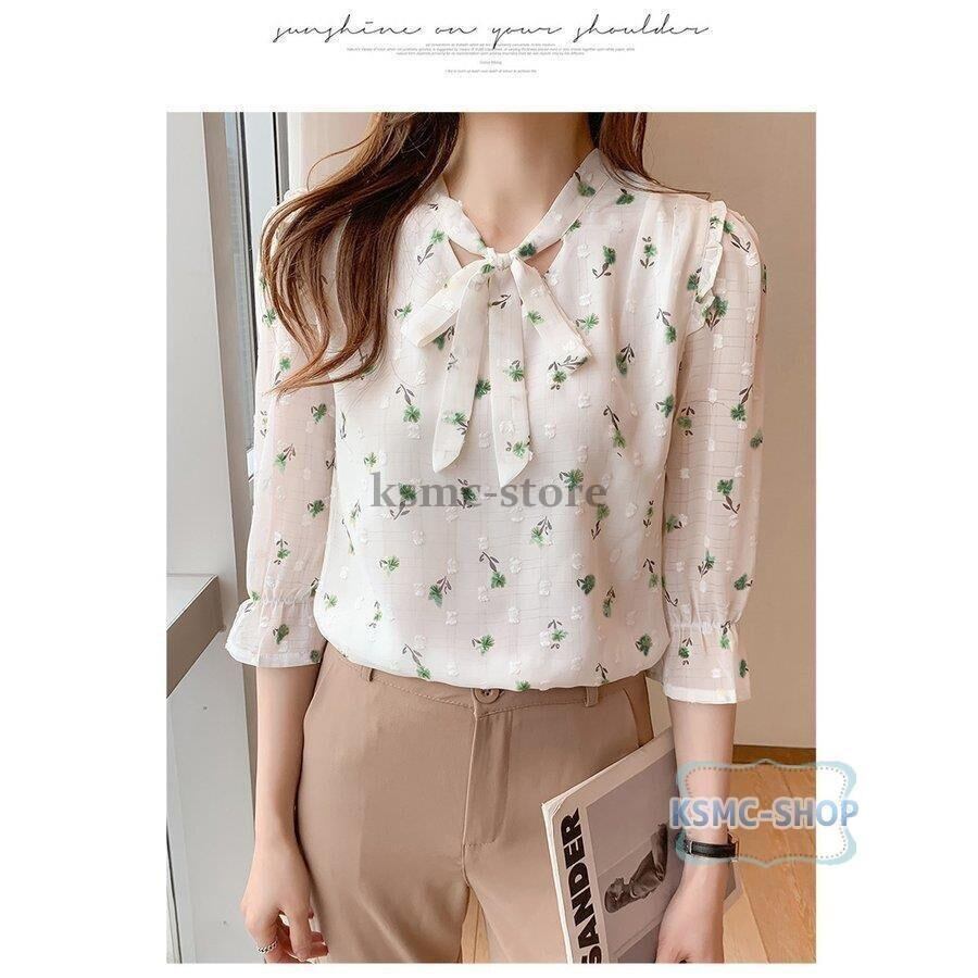 ブラウス シャツ レディース 3色 七分袖 Vネック 花柄 おしゃれ 韓国風 6908