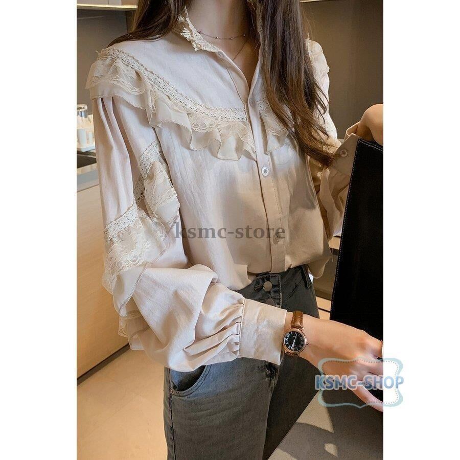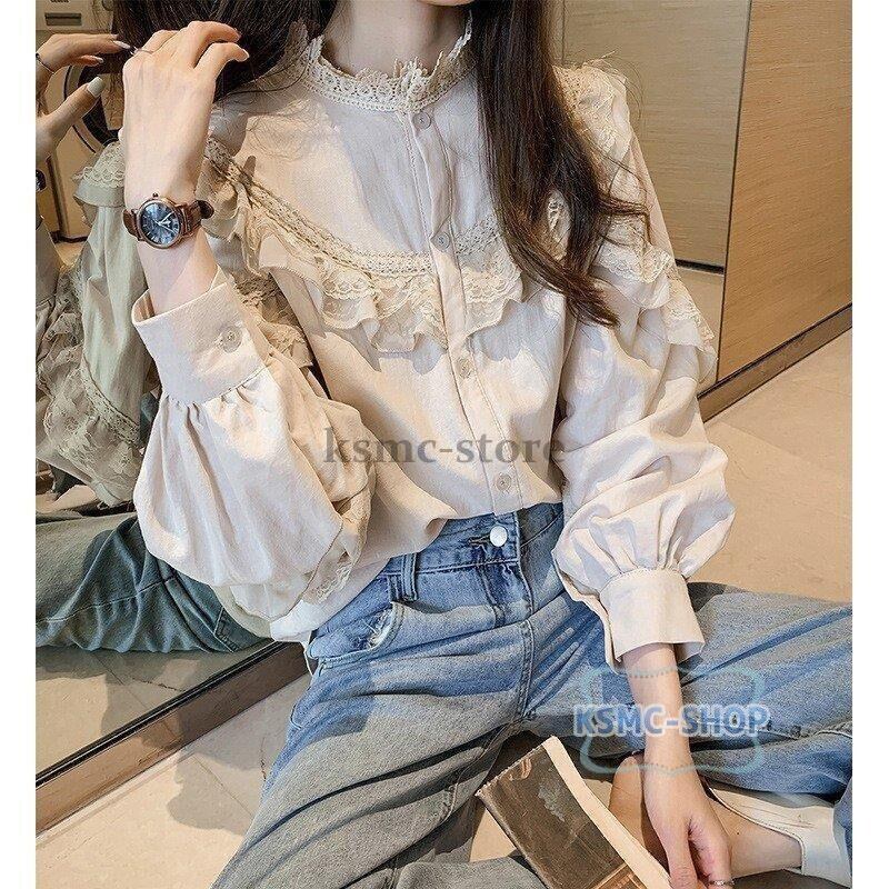 ブラウス シャツ レディース ベージュ 長袖 シフォンブラウス きれいめ おしゃれ 韓国風 韓国 ファッション コーデ おすすめ カジュアル きれいめ 大きいサイズ 人気 ゆったり 20代 30代 40代 50代