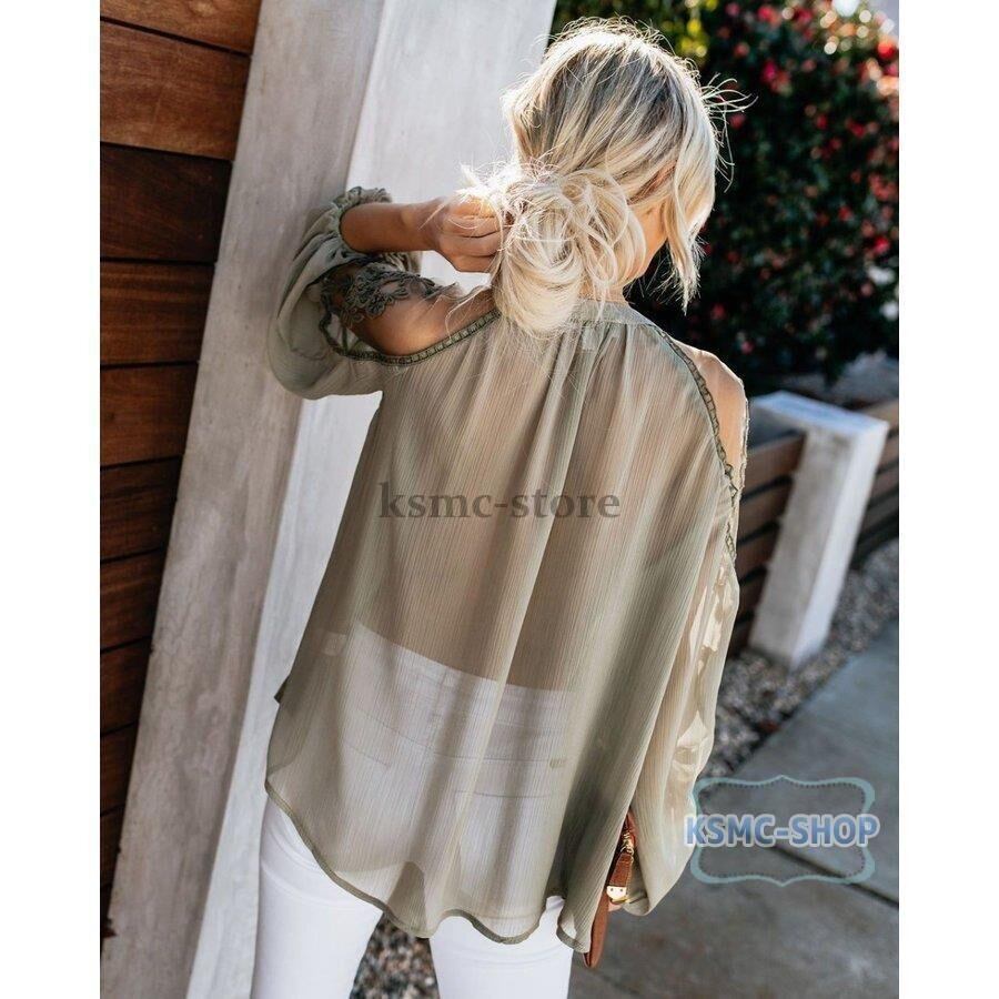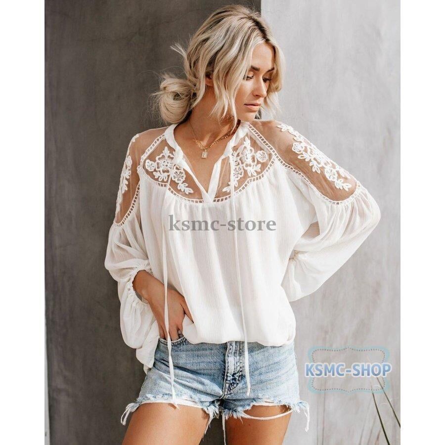 ブラウス シャツ レディース 3色 長袖 Vネック レース おしゃれ 韓国風 韓国 ファッション コーデ おすすめ カジュアル きれいめ 大きいサイズ 人気 ゆったり 20代 30代 40代 50代