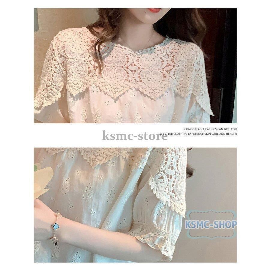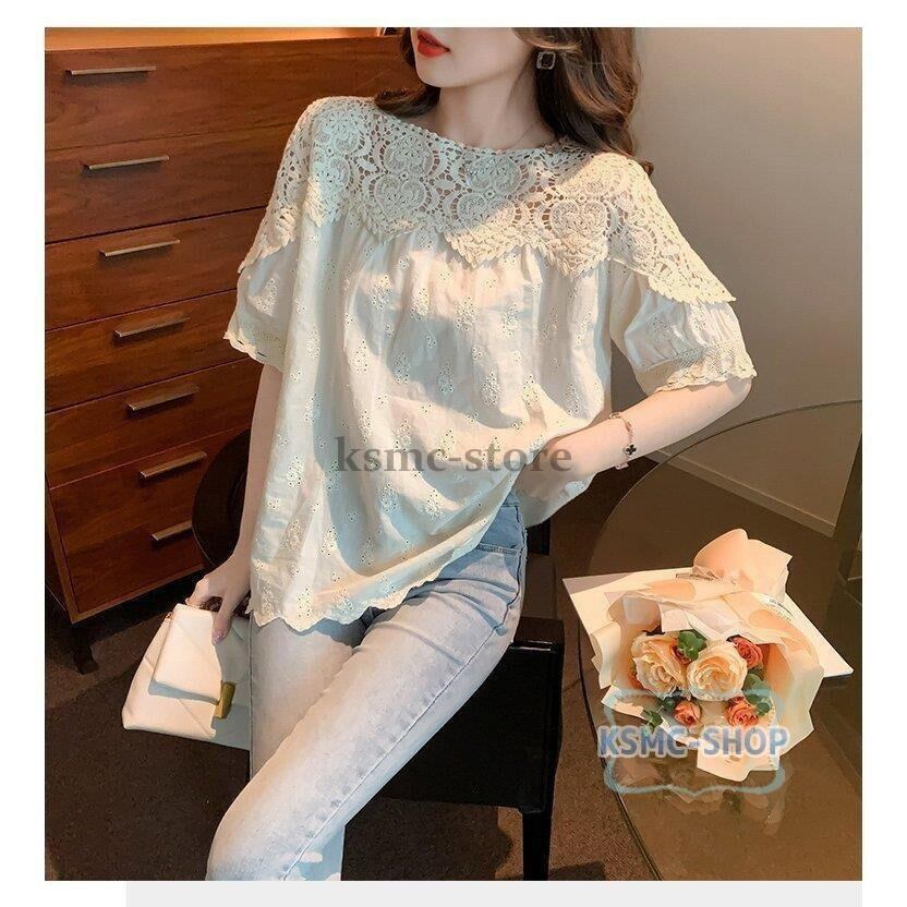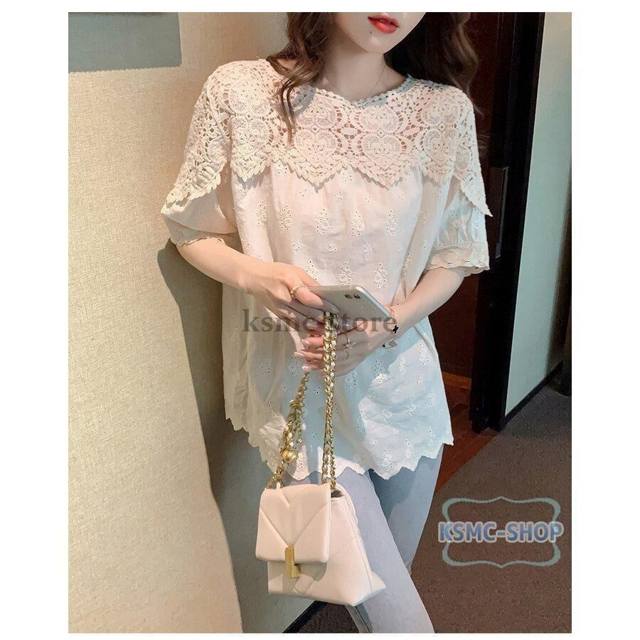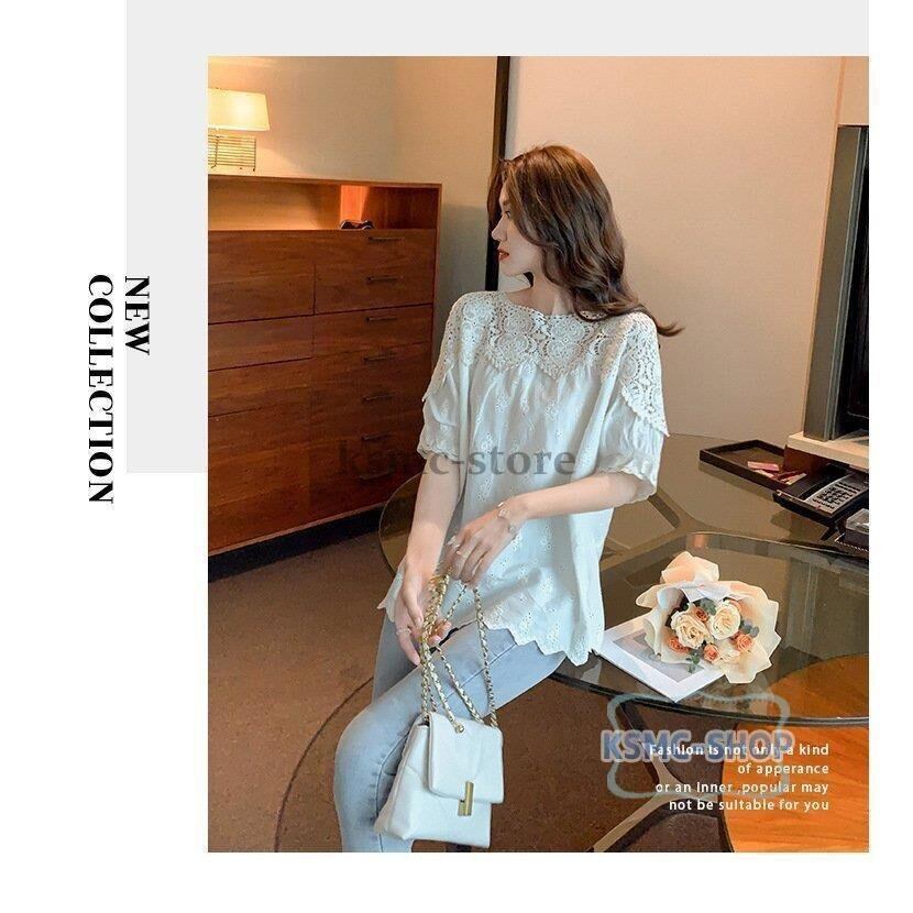 ブラウス シャツ レディース 半袖 白 シフォン レース きれいめ 韓国風 韓国 ファッション コーデ おすすめ カジュアル きれいめ 大きいサイズ 人気 ゆったり 20代 30代 40代 50代