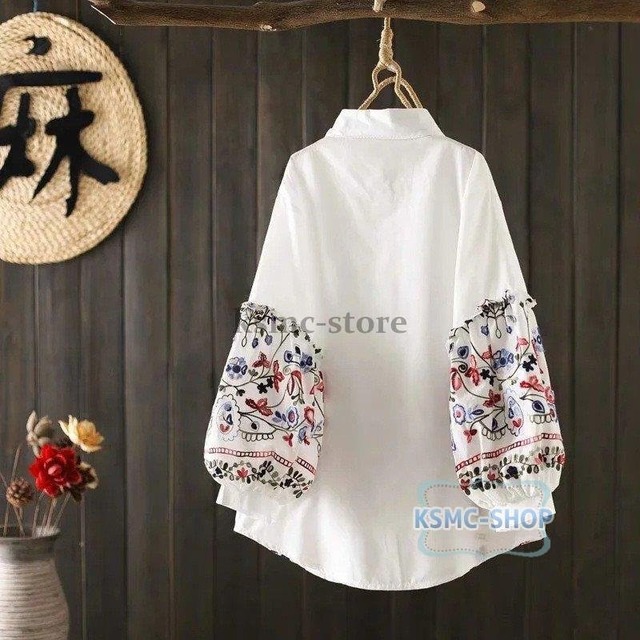 ブラウス シャツ レディース 長袖 2色 刺繍 花柄 コットン カジュアル 韓国風 韓国 ファッション コーデ おすすめ カジュアル きれいめ 大きいサイズ 人気 ゆったり 20代 30代 40代 50代