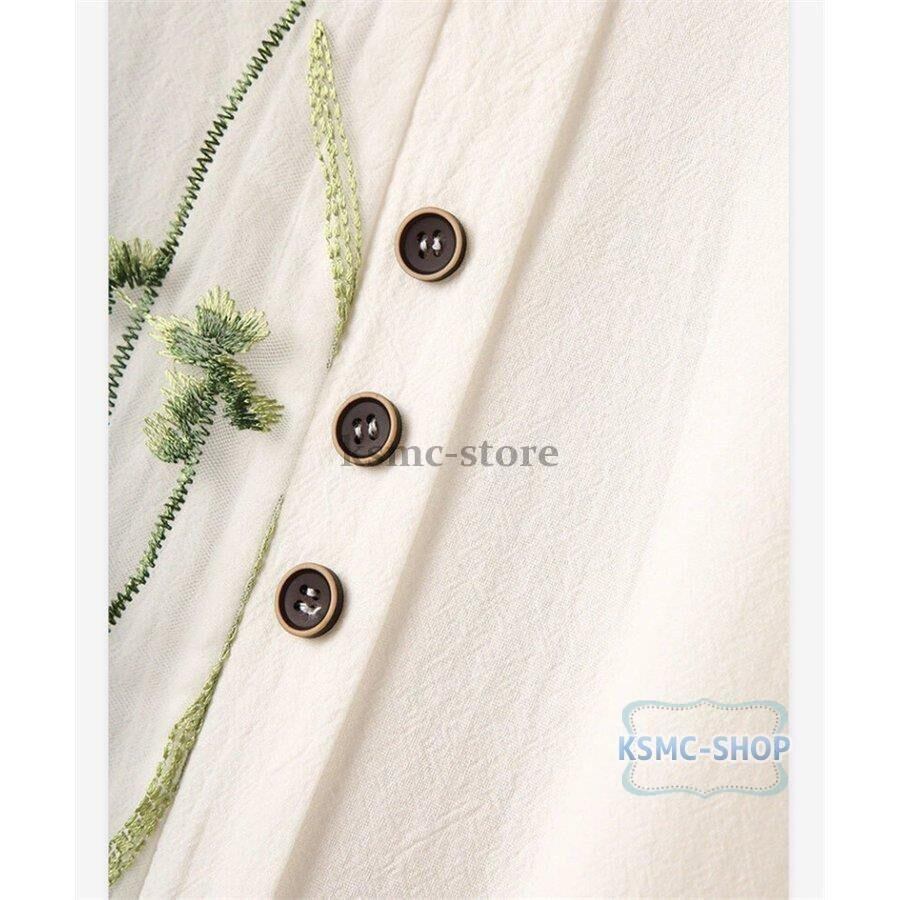 ブラウス シャツ レディース 長袖 2色 刺繍 花柄 綿麻 カジュアル 韓国風 6934