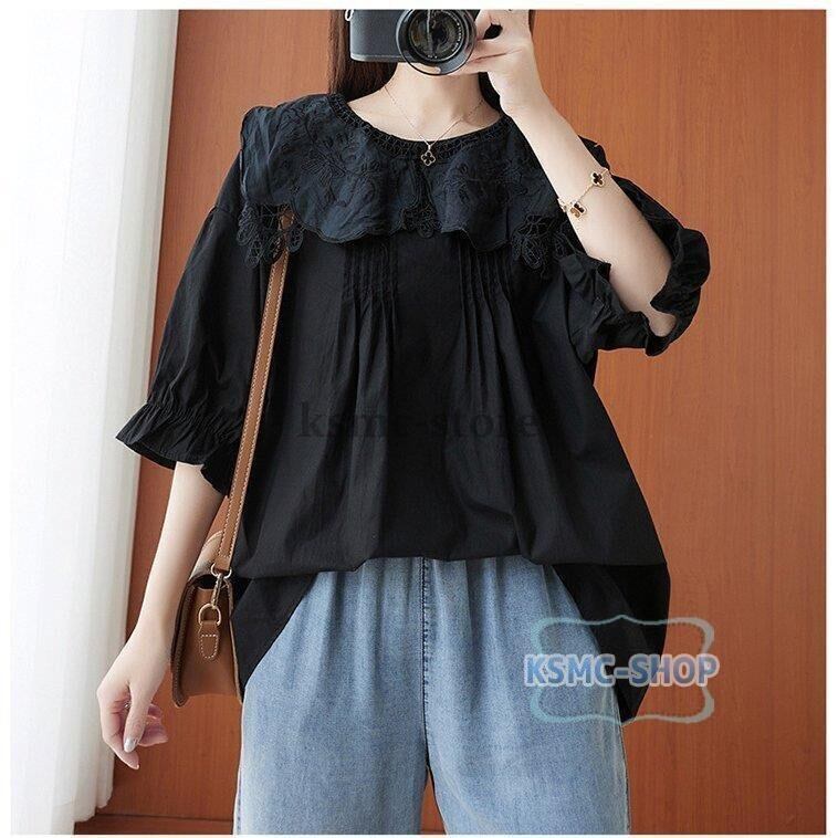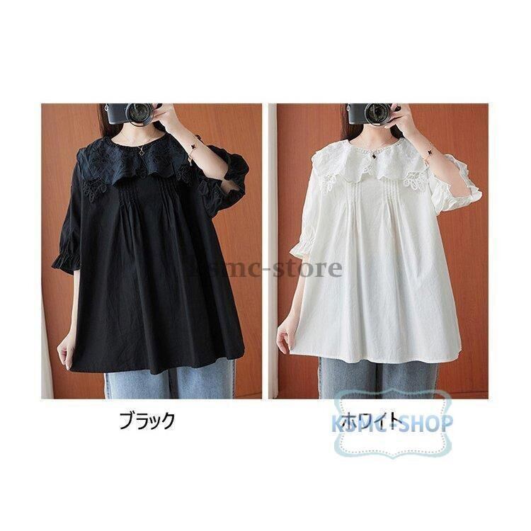 ブラウス シャツ レディース 五分袖 トップス 2色 ゆったり オーバーサイズ 韓国風 6936