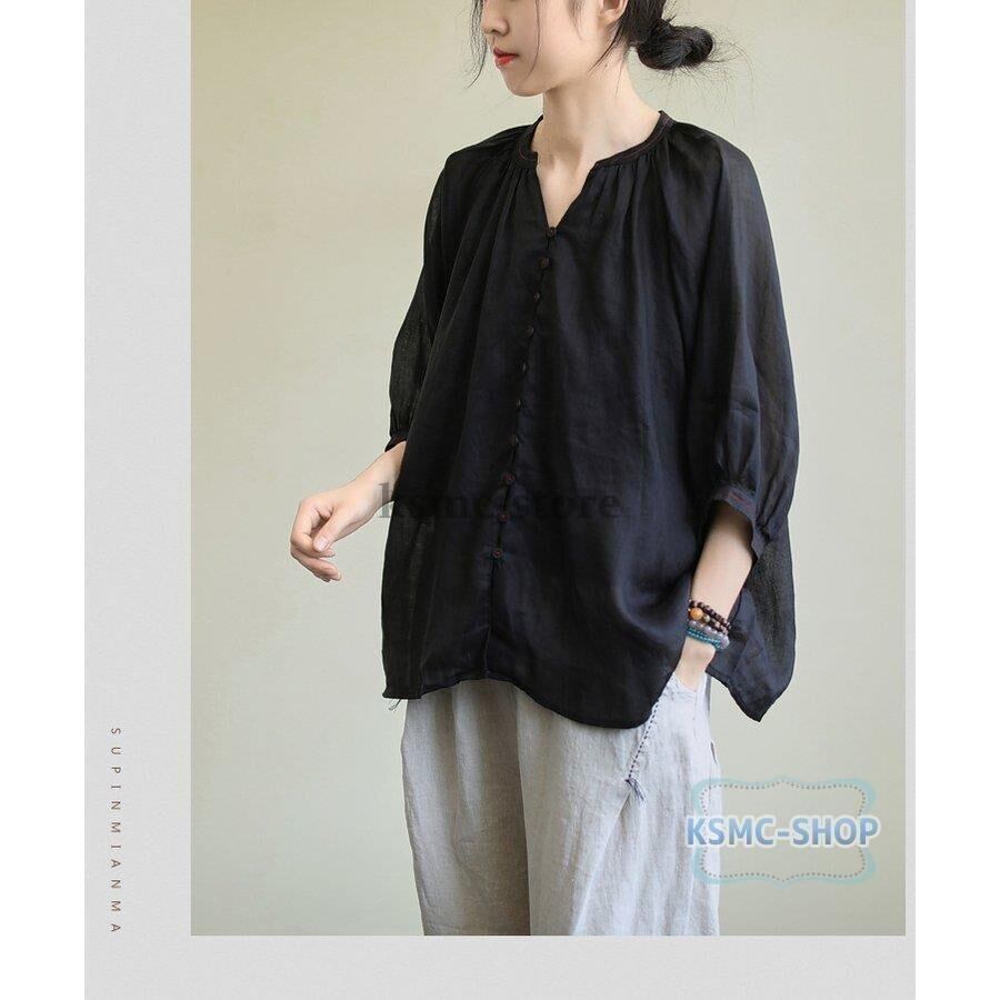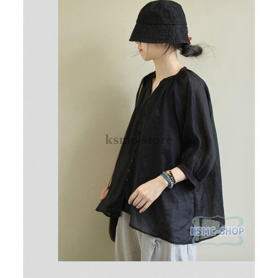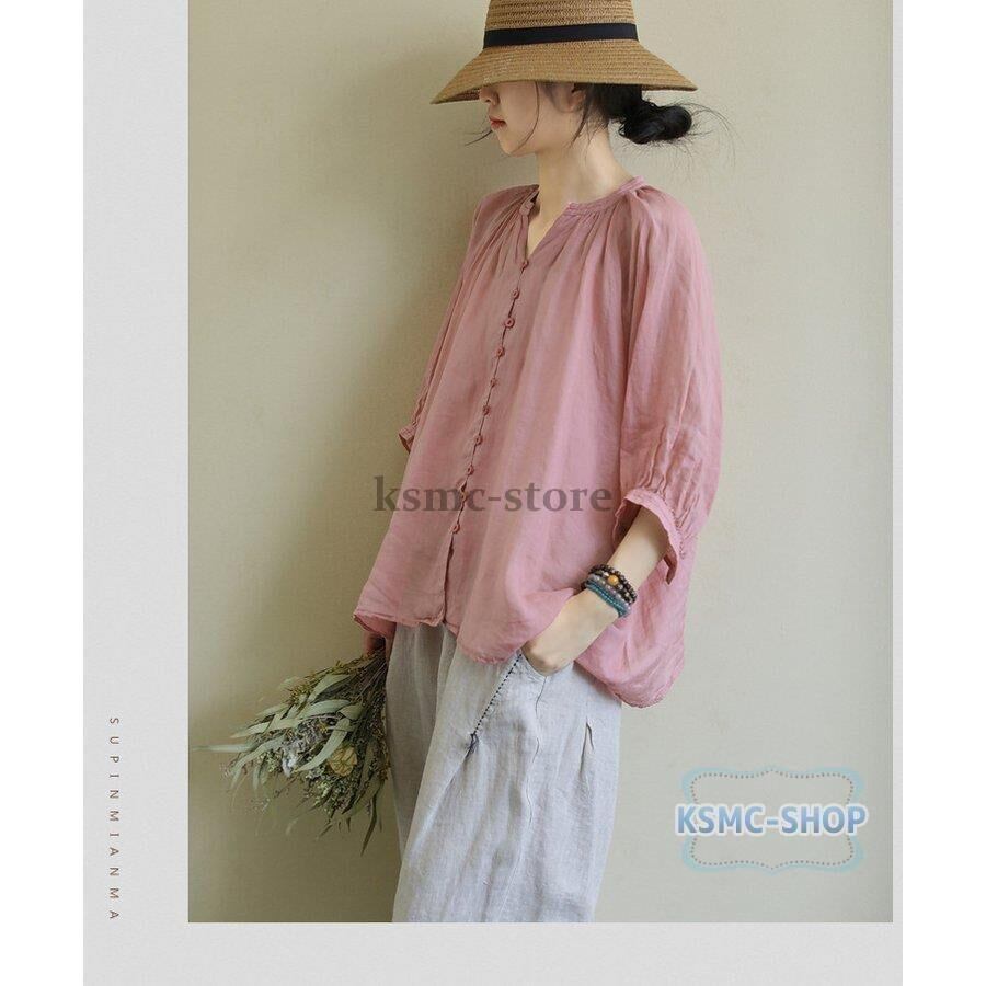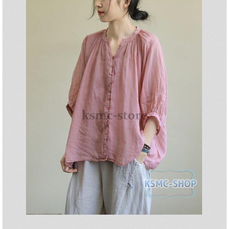ブラウス シャツ レディース 七分袖 2色 パフスリーブ カジュアル おしゃれ 韓国風 韓国 ファッション コーデ おすすめ カジュアル きれいめ 大きいサイズ 人気 ゆったり 20代 30代 40代 50代