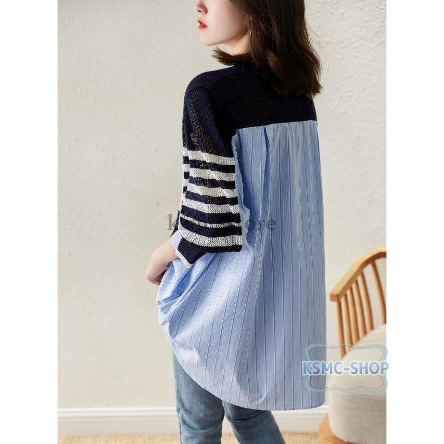 ブラウス シャツ カーディガン レディース 長袖 ネイビー 切替え おしゃれ 韓国風 韓国 ファッション コーデ おすすめ カジュアル きれいめ 大きいサイズ 人気 ゆったり 20代 30代 40代 50代