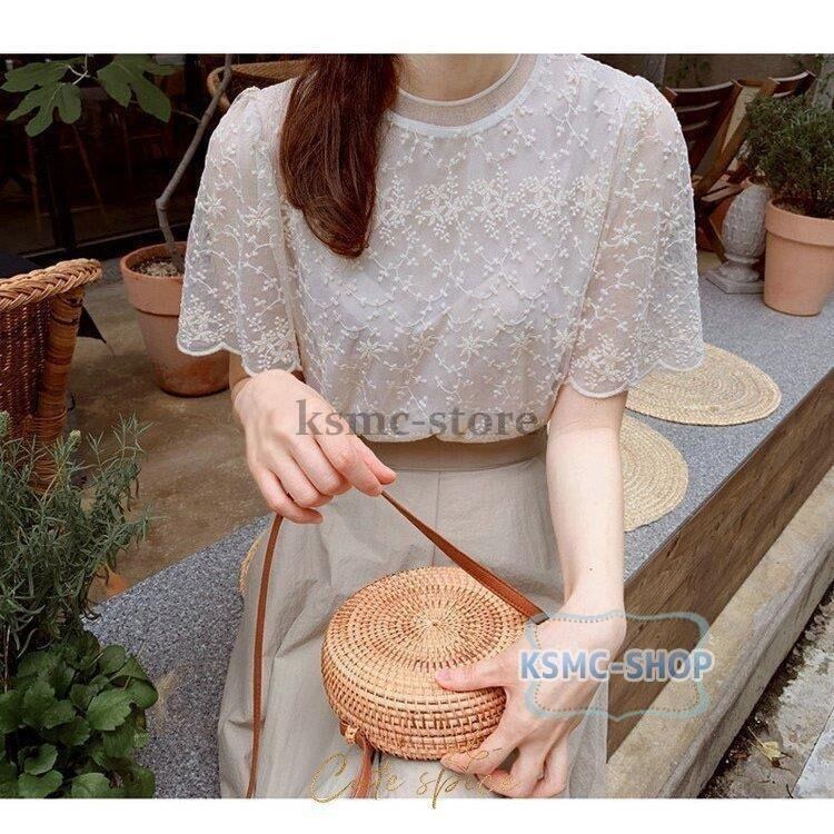 ブラウス シャツ レディース 半袖 白 レース 花柄 おしゃれ 韓国風 6954