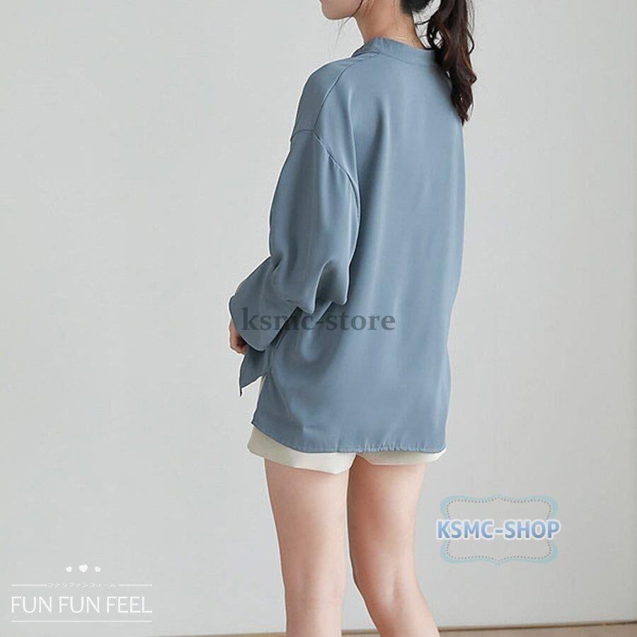 ブラウス シャツ レディース 七分袖 2色 Vネック シフォンシャツ パフスリーブ おしゃれ 韓国風 6962
