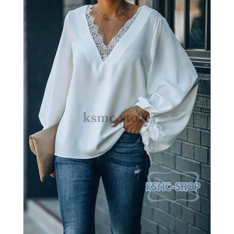 ブラウス シャツ レディース 長袖 Vネック 2色 レース切替 おしゃれ カジュアル 韓国風 韓国 ファッション コーデ おすすめ カジュアル きれいめ 大きいサイズ 人気 ゆったり 20代 30代 40代 50代
