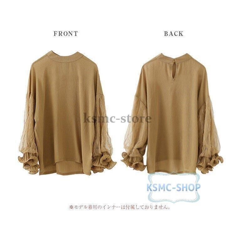 ブラウス レース シャツ レディース 長袖 4色 ボリューム袖 七分袖 韓国風 6981