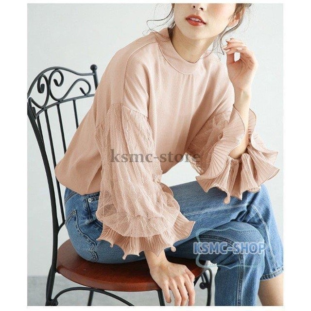 ブラウス レース シャツ レディース 長袖 4色 ボリューム袖 七分袖 韓国風 韓国 ファッション コーデ おすすめ カジュアル きれいめ 大きいサイズ 人気 ゆったり 20代 30代 40代 50代