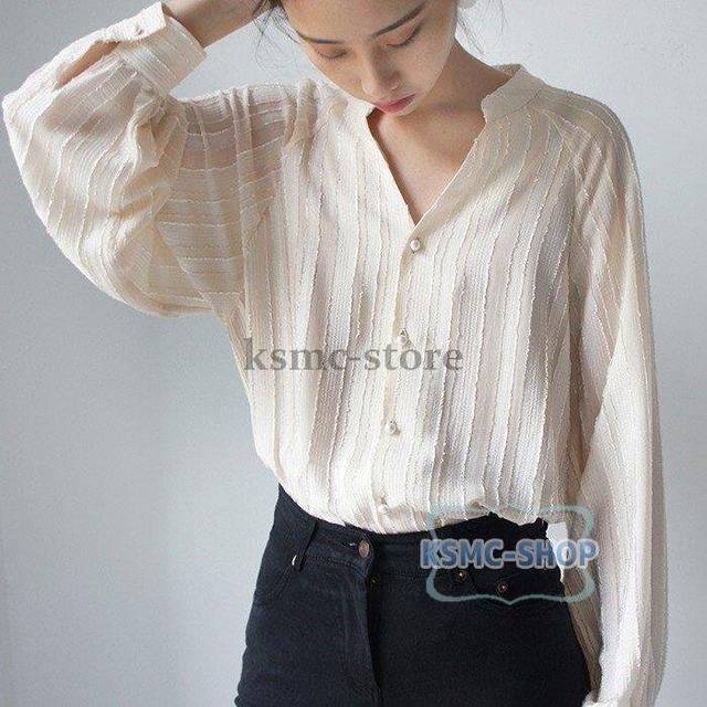 ブラウス シャツ レディース 長袖 Vネック きれいめ カジュアル 韓国風 韓国 ファッション コーデ おすすめ カジュアル きれいめ 大きいサイズ 人気 ゆったり 20代 30代 40代 50代