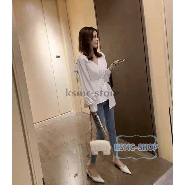 ブラウス シャツ レディース 長袖 3色 Vネック きれいめ オフィス 韓国風 6995