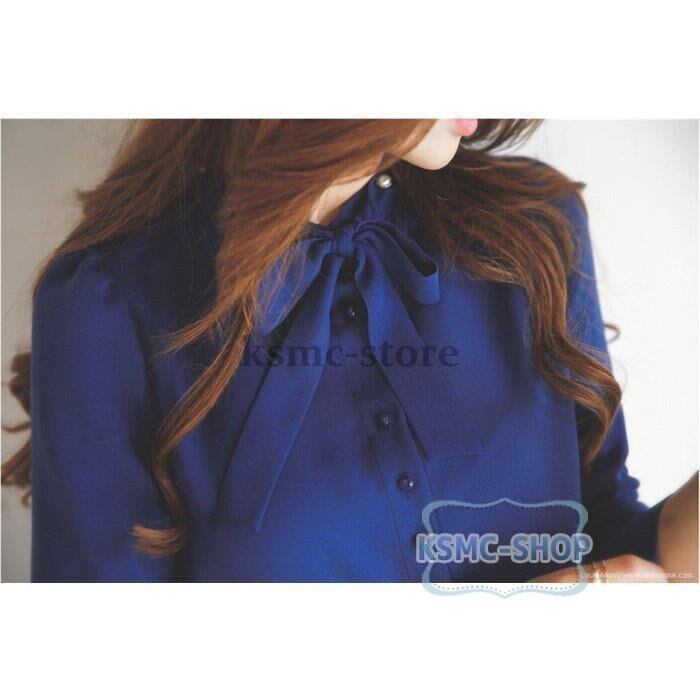 ブラウス シャツ レディース 長袖 ブルー シフォンブラウス オフィス きれいめ 韓国風 7000