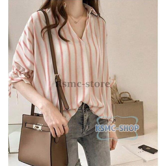 ブラウス シャツ レディース 3色 ストライプ ドルマンスリーブ きれいめ 韓国風 韓国 ファッション コーデ おすすめ カジュアル きれいめ 大きいサイズ 人気 ゆったり 20代 30代 40代 50代
