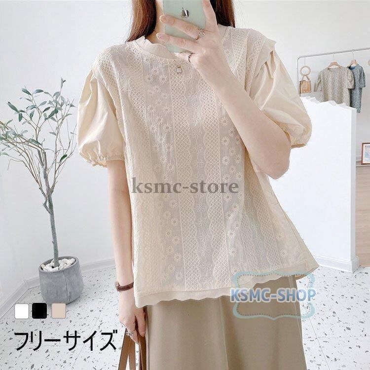 ブラウス シャツ レディース 3色 半袖 ゆったり きれいめ 韓国風 7020