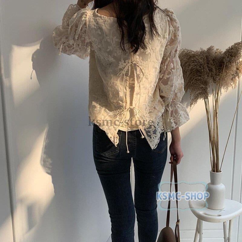 ブラウス シャツ レディース 七分袖 レース 花柄刺繍 おしゃれ きれいめ カジュアル 韓国風 韓国 ファッション コーデ おすすめ カジュアル きれいめ 大きいサイズ 人気 ゆったり 20代 30代 40代 50代