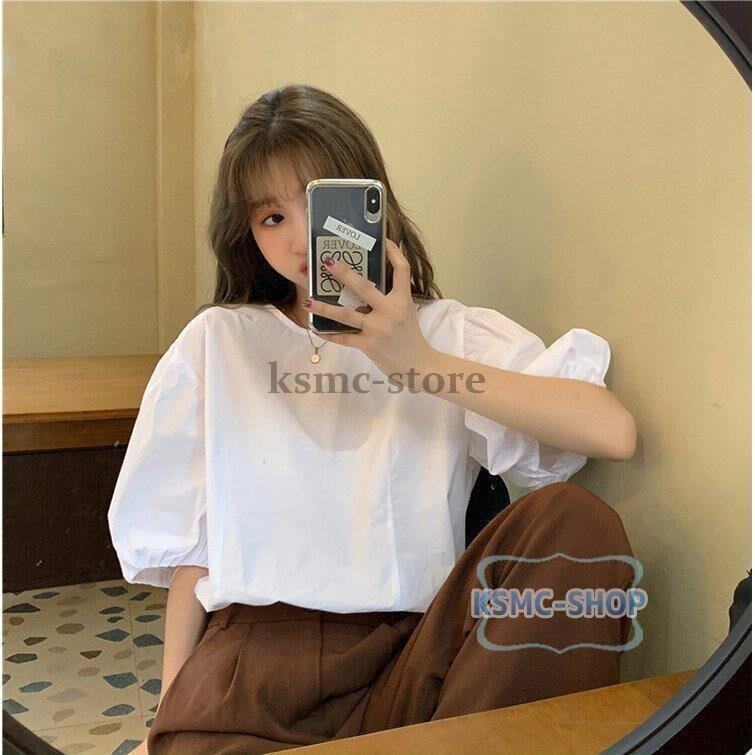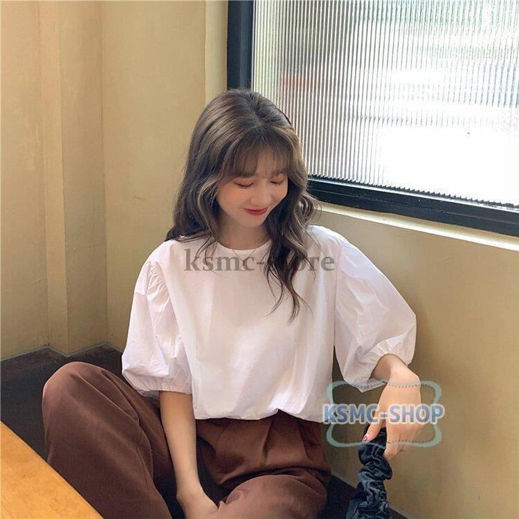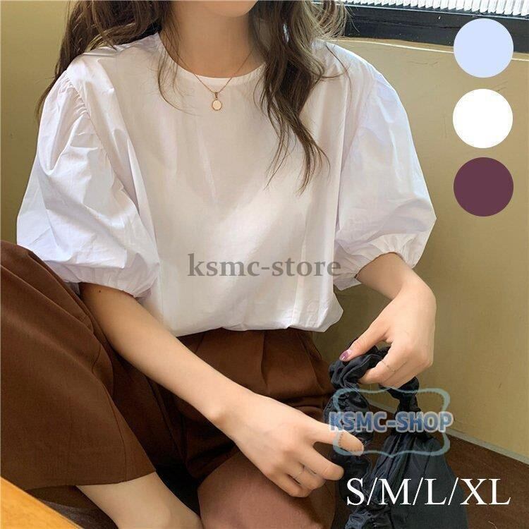 ブラウス シャツ レディース 半袖 3色 パフスリーブ おしゃれ きれいめ カジュアル 韓国風 韓国 ファッション コーデ おすすめ カジュアル きれいめ 大きいサイズ 人気 ゆったり 20代 30代 40代 50代