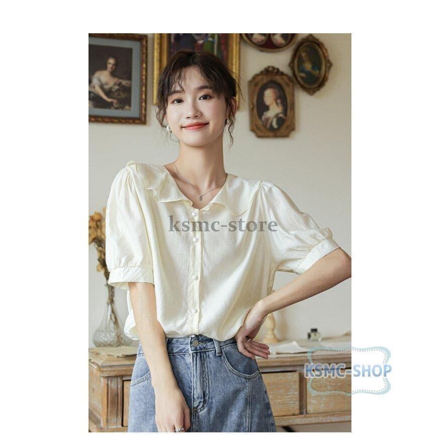 ブラウス シャツ レディース 半袖 2色 Vネック シフォン カジュアル 韓国風 韓国 ファッション コーデ おすすめ カジュアル きれいめ 大きいサイズ 人気 ゆったり 20代 30代 40代 50代
