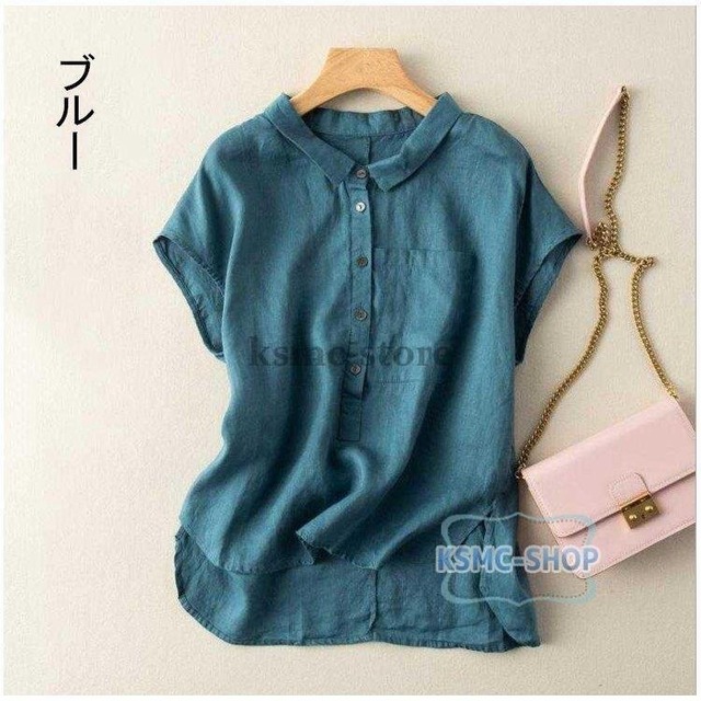 ブラウス シャツ レディース 6色 半袖 ロング丈 カジュアル 韓国風 韓国 ファッション コーデ おすすめ カジュアル きれいめ 大きいサイズ 人気 ゆったり 20代 30代 40代 50代