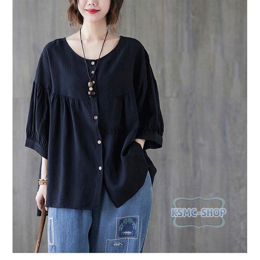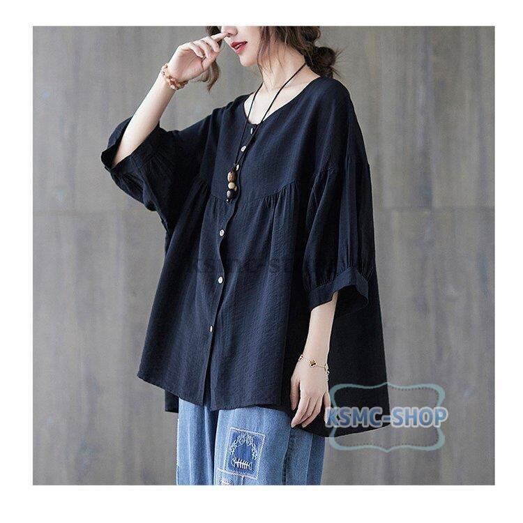 ブラウス シャツ レディース 五分袖 2色 綿 ゆったり カジュアル 韓国風 韓国 ファッション コーデ おすすめ カジュアル きれいめ 大きいサイズ 人気 ゆったり 20代 30代 40代 50代