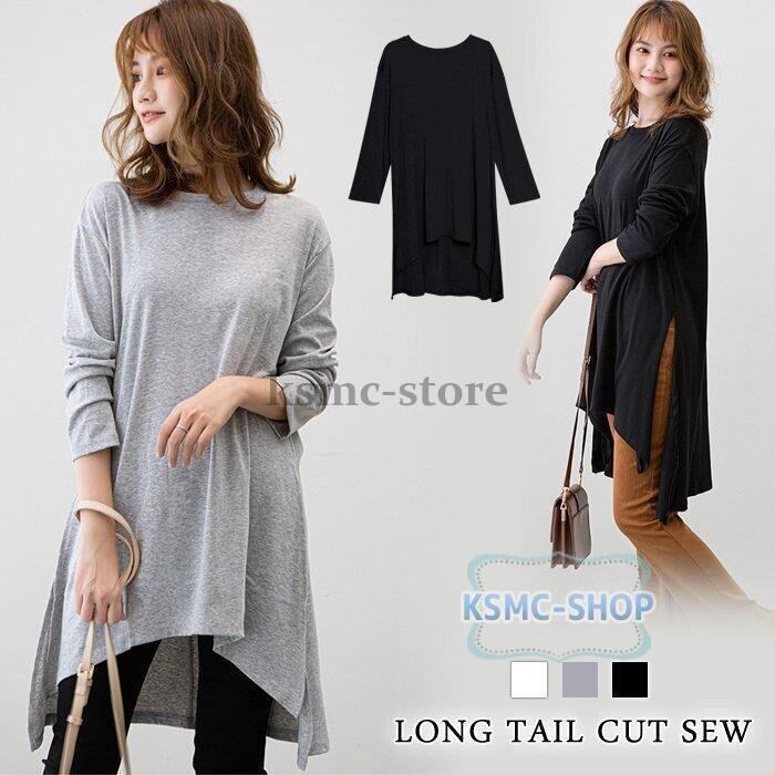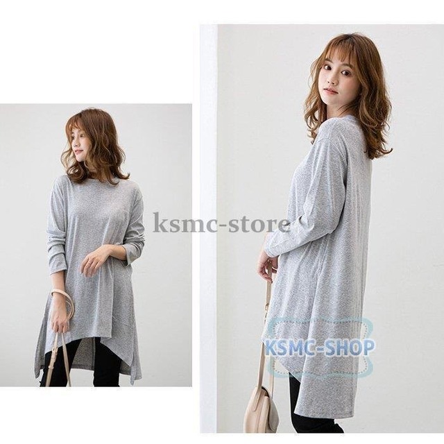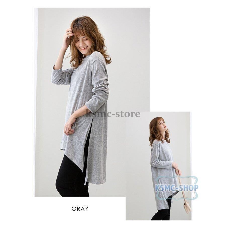 ロングシャツ シャツブラウス カットソー レディース 長袖 3色 チュニック 韓国風 7047