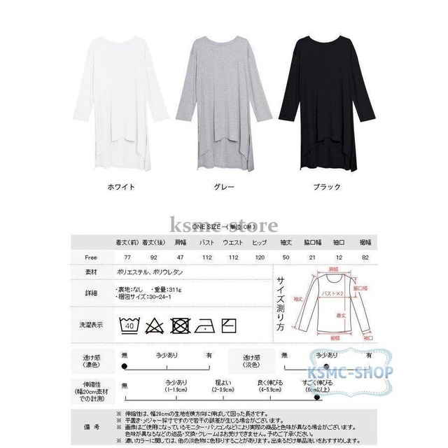 ★サイズ:ワンサイズ 着丈前77/後ろ92 バスト112 ウエスト112 ヒップ120 袖丈50