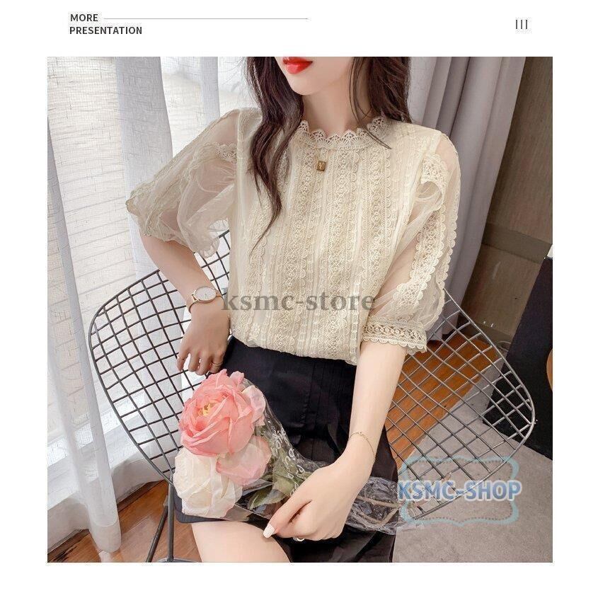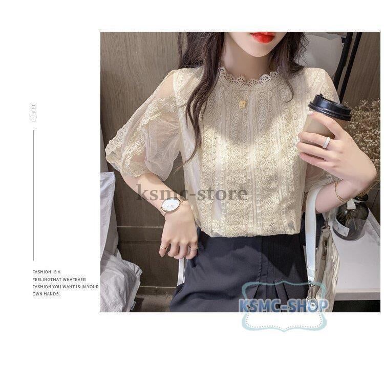 ブラウス シャツ レディース 半袖 2色 パフスリーブ きれいめ 韓国風 7049