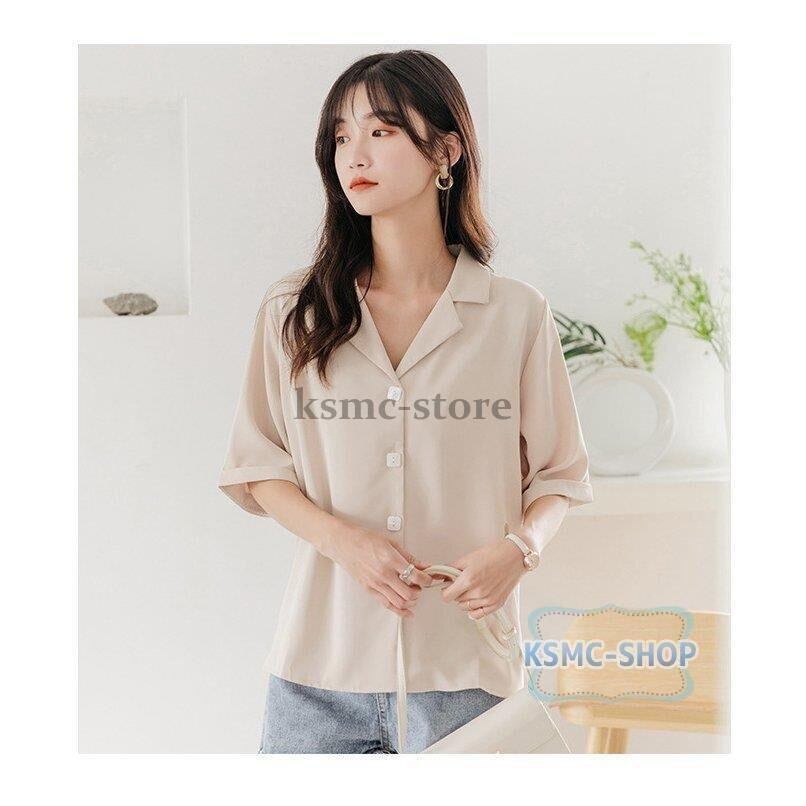 ブラウス シャツ レディース 半袖 3色 シフォン オフィス カジュアル 韓国風 韓国 ファッション コーデ おすすめ カジュアル きれいめ 大きいサイズ 人気 ゆったり 20代 30代 40代 50代