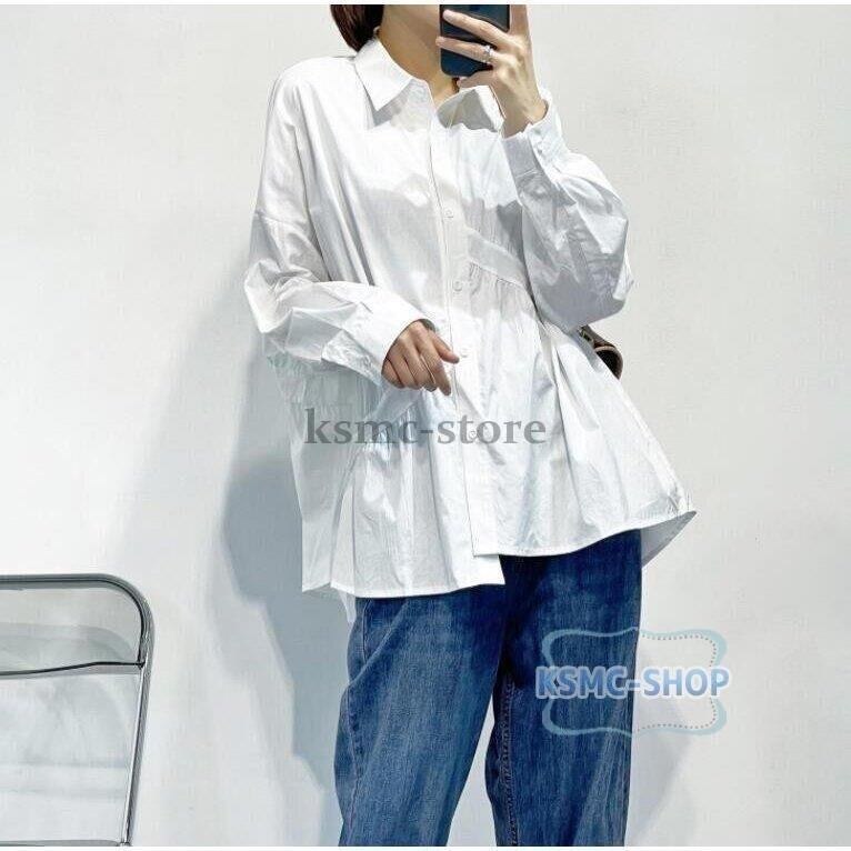 ブラウス シャツ レディース 長袖 2色 コットン ギャザー おしゃれ 韓国風 韓国 ファッション コーデ おすすめ カジュアル きれいめ 大きいサイズ 人気 ゆったり 20代 30代 40代 50代
