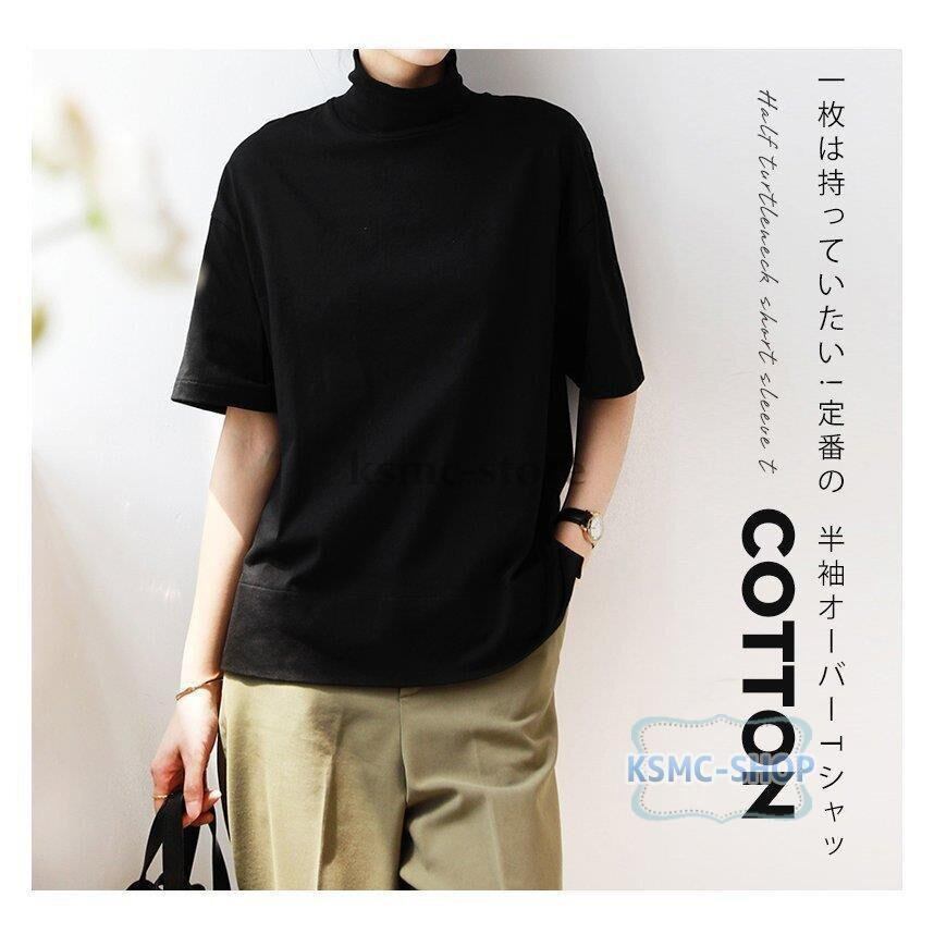 tシャツ レディース 半袖 2色 ハイネック ボトルネック ドロップショルダー 韓国風 韓国 ファッション コーデ おすすめ カジュアル きれいめ 大きいサイズ 人気 ゆったり 20代 30代 40代 50代
