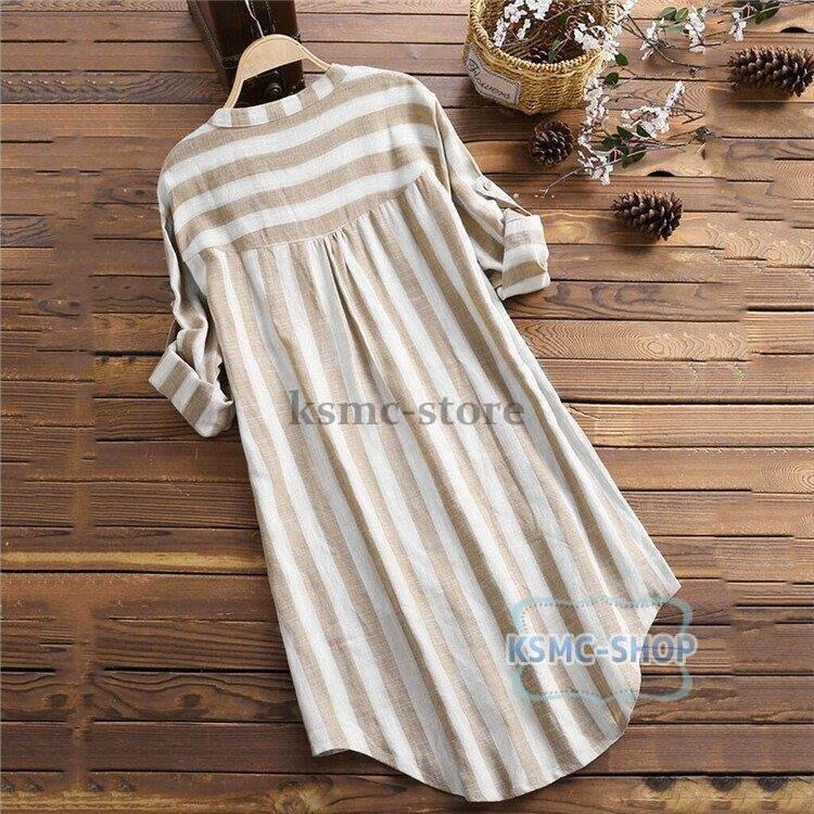 シャツ ブラウス チュニック レディース 長袖 4色 ゆったり ストライプ柄 韓国風 7087