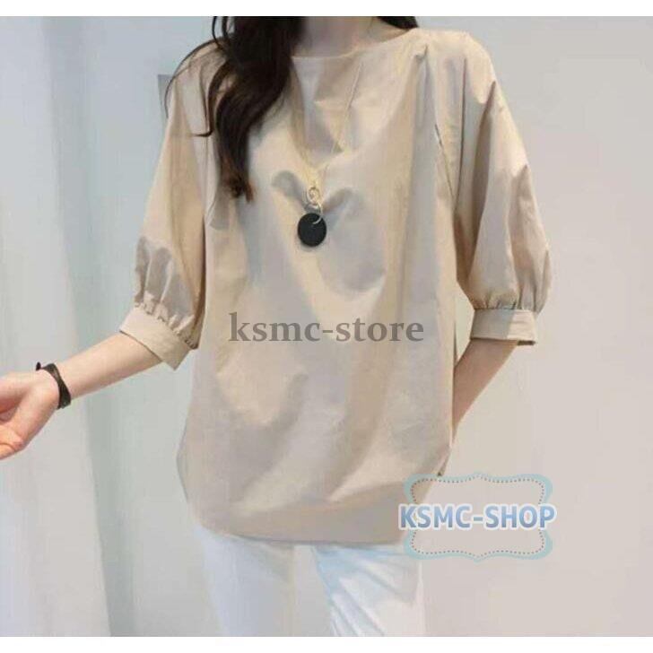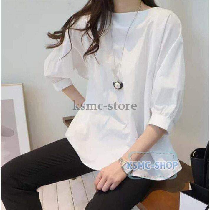 シャツ ブラウス レディース 五分袖 2色 パフスリーブ 韓国風 韓国 ファッション コーデ おすすめ カジュアル きれいめ 大きいサイズ 人気 ゆったり 20代 30代 40代 50代