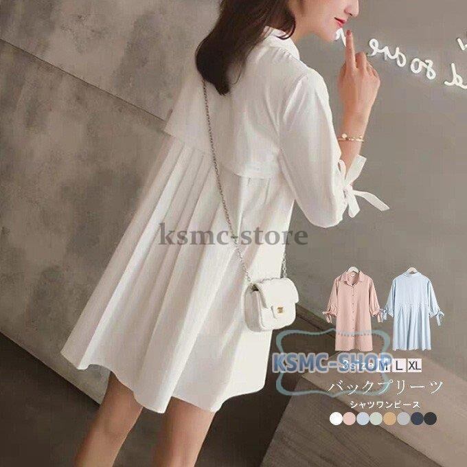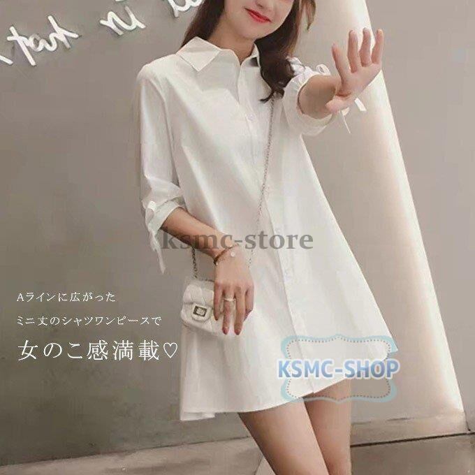 ワンピース シャツワンピ レディース 半袖 白 チュニック 袖リボン Aライン 韓国風 韓国 ファッション コーデ おすすめ カジュアル きれいめ 大きいサイズ 人気 ゆったり 20代 30代 40代 50代