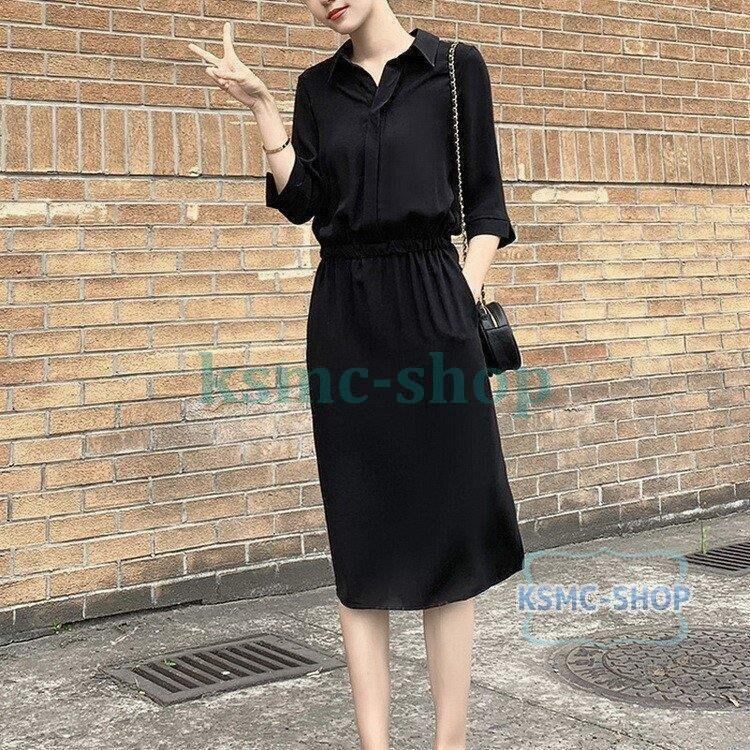 ワンピース シャツワンピ レディース 五分袖 マキシ丈 きれいめ 韓国風 7201