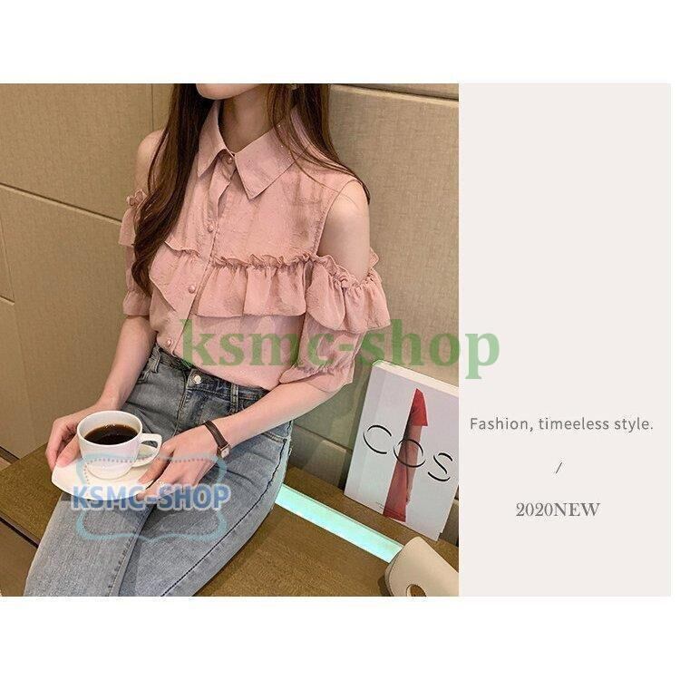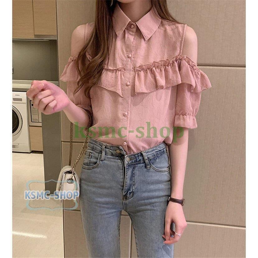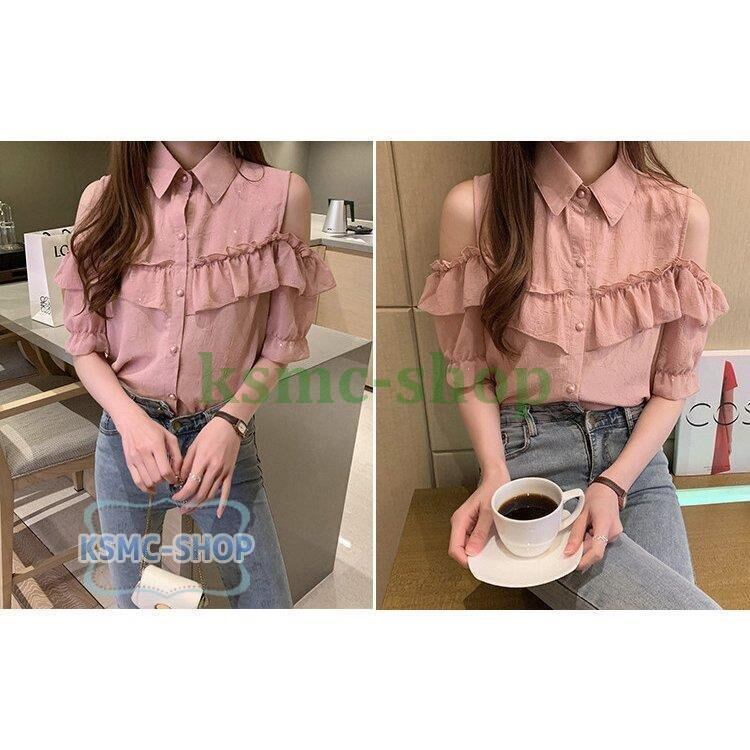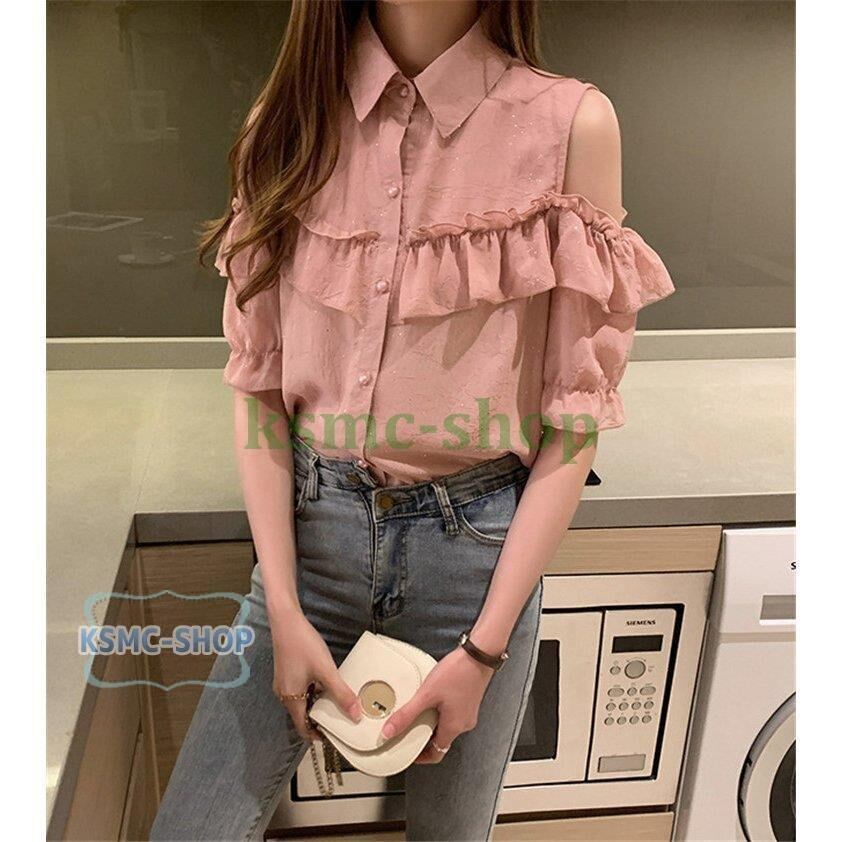 ブラウス シャツ レディース 半袖 肩出し シフォン おしゃれ 韓国風 韓国 ファッション コーデ おすすめ カジュアル きれいめ 大きいサイズ 人気 ゆったり 20代 30代 40代 50代