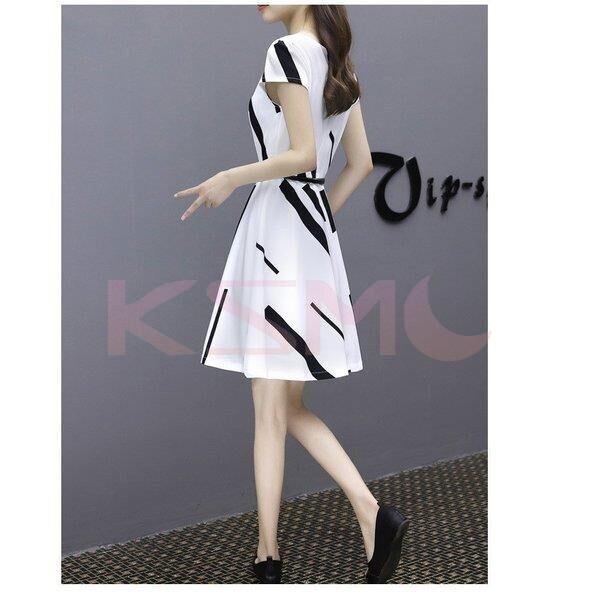 ワンピース ドレス レディース 半袖 膝丈 Aライン ベルト付き きれいめ 韓国風 7228